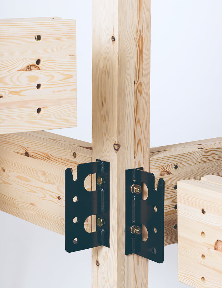 ボルト表面に凹凸加工を施して木材にねじ込むことで、引張剛性を向上。一般的なボルトの約2倍の強度で、経年変化による緩みや引き抜けを防ぎます。